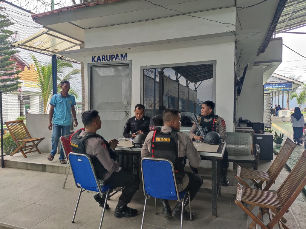 Selanjutnya, tim patroli menyambangi Lembaga Pemasyarakatan (Lapas) Kelas II B Gunung Sugih. Di lokasi tersebut, personel Brimob melaksanakan dialog dan koordinasi dengan Kepala Regu Pengamanan (Karupan) serta pegawai Lapas guna memperkuat sinergi dalam menjaga stabilitas keamanan.
